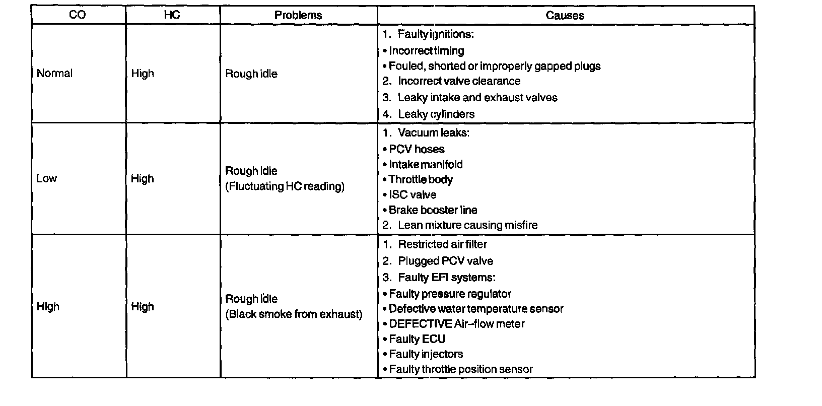 e. If the CO/HC concentration does not comply with regulations, troubleshoot in the order given.