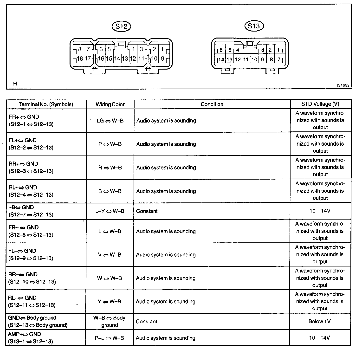 Terminals Of ECU - Stereo Component Amplifier Assy Part 2: