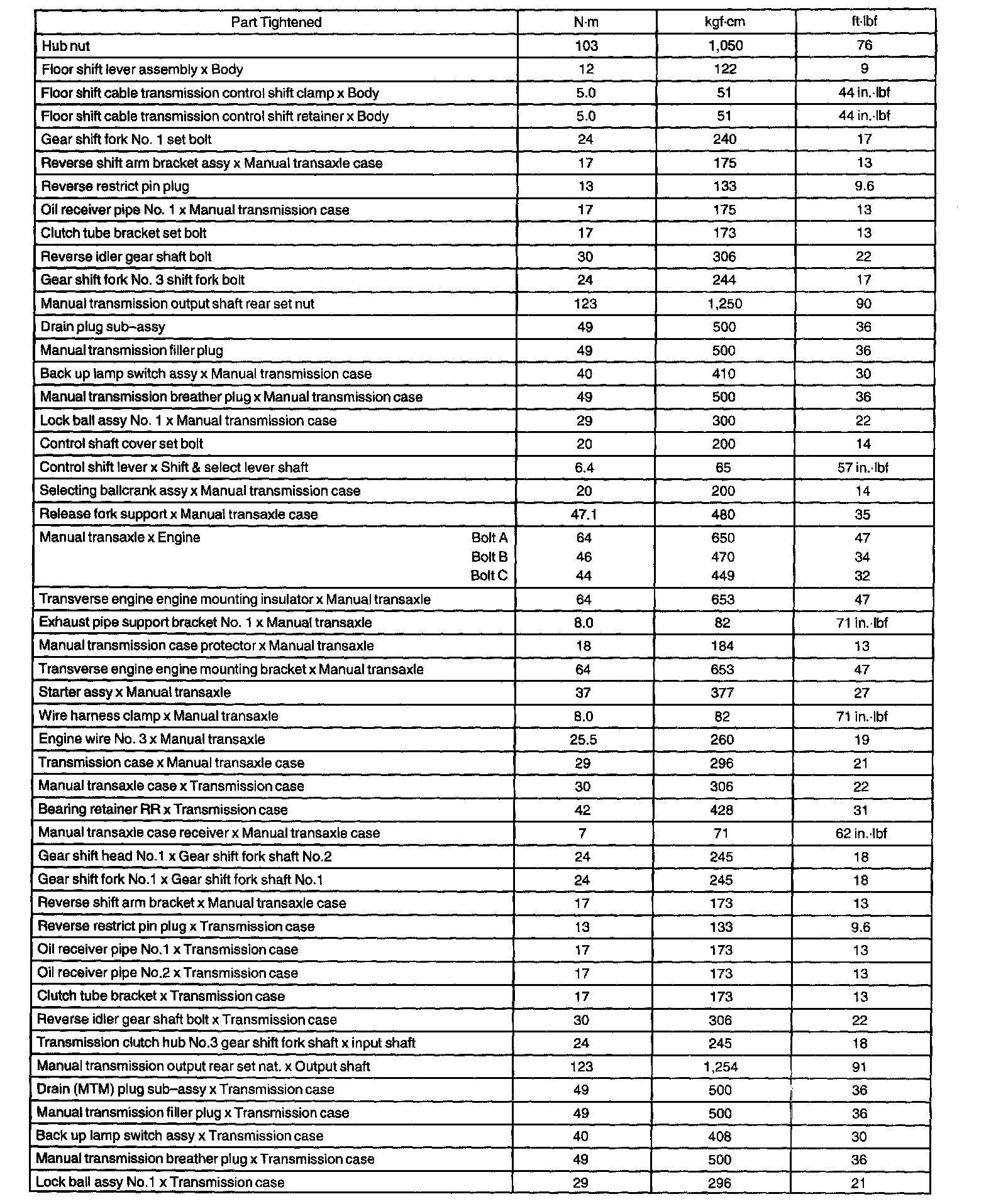 Torque Specification