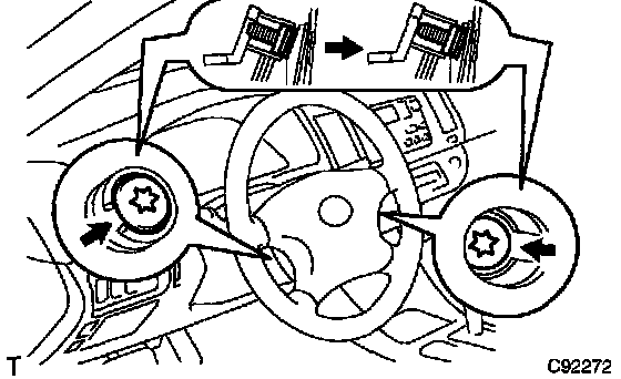 5. REMOVE CONNECTOR COVER (W/ STEERING PAD SWITCH 4 SPOKE STEERING WHEEL)