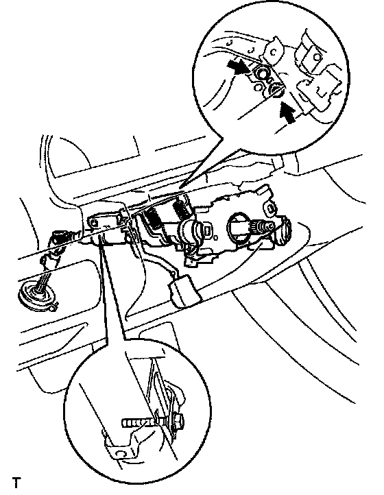 a. Install the ignition or starter switch assy to the steering column bracket assy with the 2 screws.