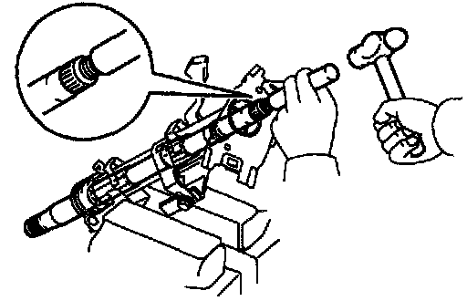 b. Using a brass bar and a hammer, remove the steering main shaft assy and steering main shaft radial ball bearing.