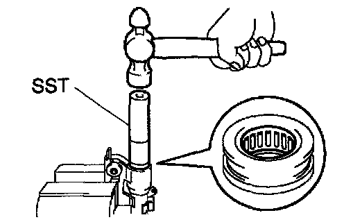 a. Using SST and a hammer, install a new steering main radial ball bearing.