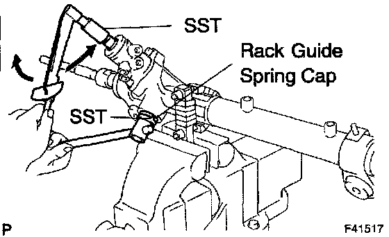 e. Using SST, loosen the rack guide spring cap until the compression spring is not functioning.