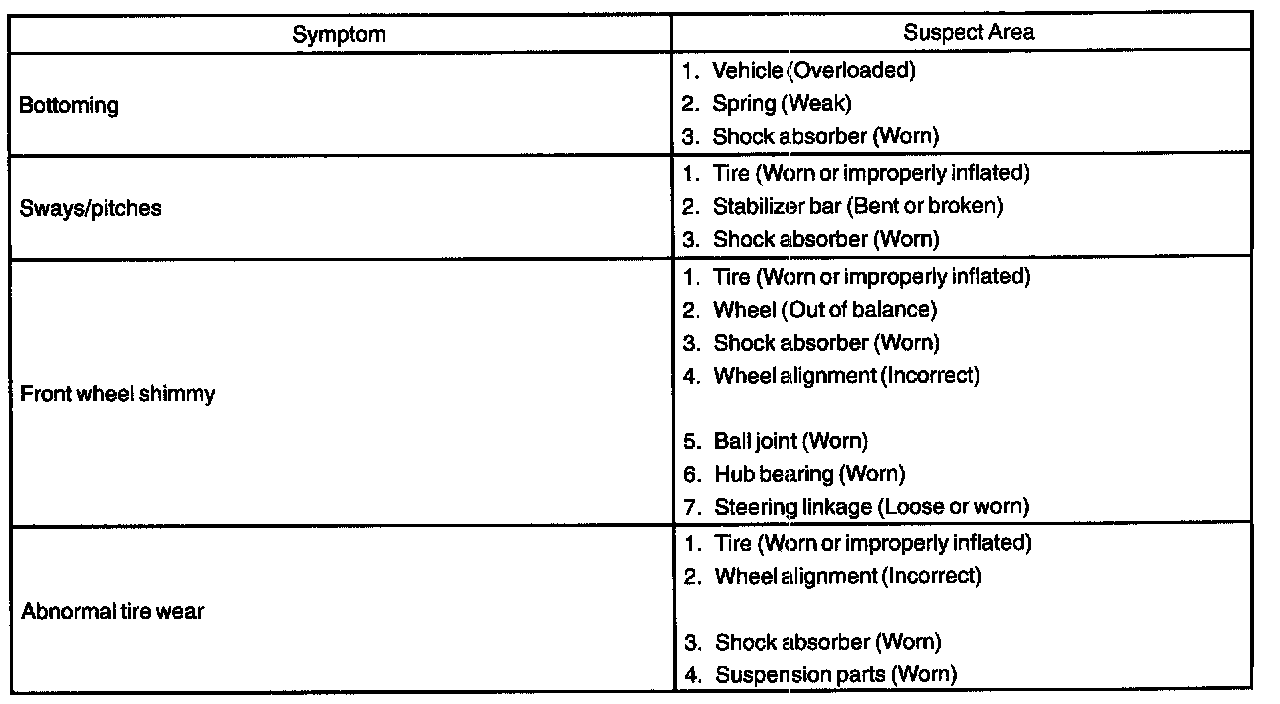 PROBLEM SYMPTOMS TABLE