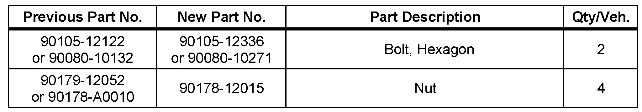 - 2003 model year Avalon and Camry vehicles produced BEFORE the following VINs were built with the previous bolt/nut; vehicles AFTER the following VINs were built with the new bolt/nut.