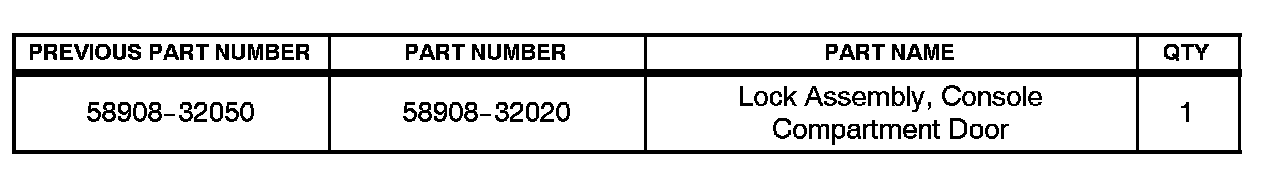 In the event the center console latch requires replacement, do not replace the lid assembly. The center console lid latch is now available as a service part.