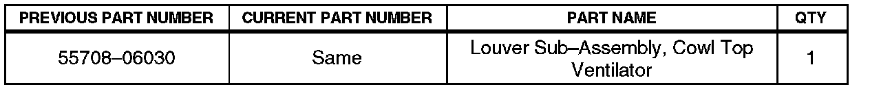 Some customers may experience a creak or tick noise from the windshield area. The rubber strip of the cowl louver cover may be rubbing against the outside windshield, creating a noise condition. This may be more apparent in cooler weather. To remedy this condition. replace the cowl louver cover with a service part.