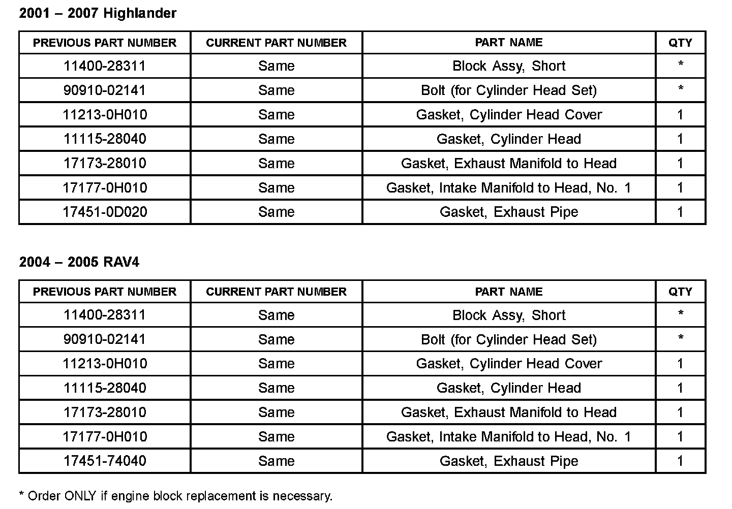 Some vehicles equipped with the 2AZ-FE engine may exhibit damaged cylinder head bolts. Please follow the Repair Procedure to install Time Sert(R) thread repair inserts into the cylinder block.