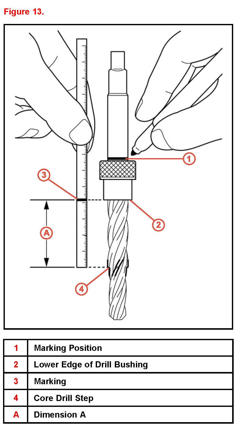 G. Repeat steps 9B through 9F until the marking on the core drill is aligned with the top surface of the drill bushing.