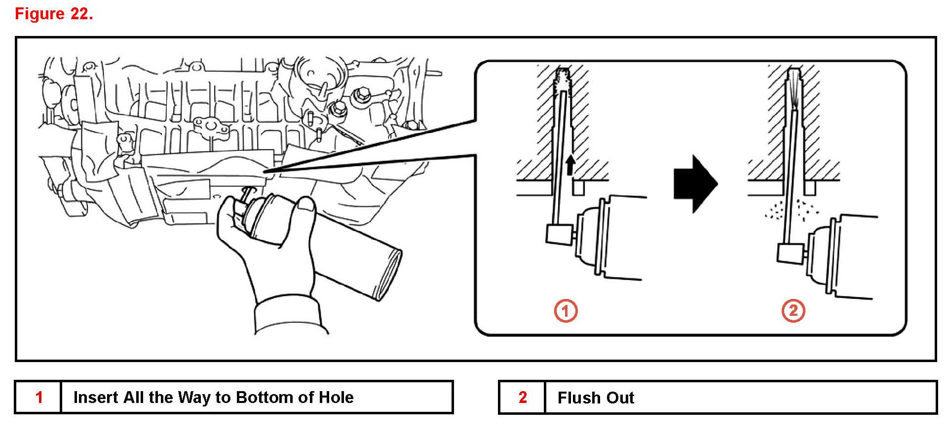 E. Insert the nozzle all the way into the bolt hole and spray brake cleaner into the hole in order to flush out the cutting particles from inside it.