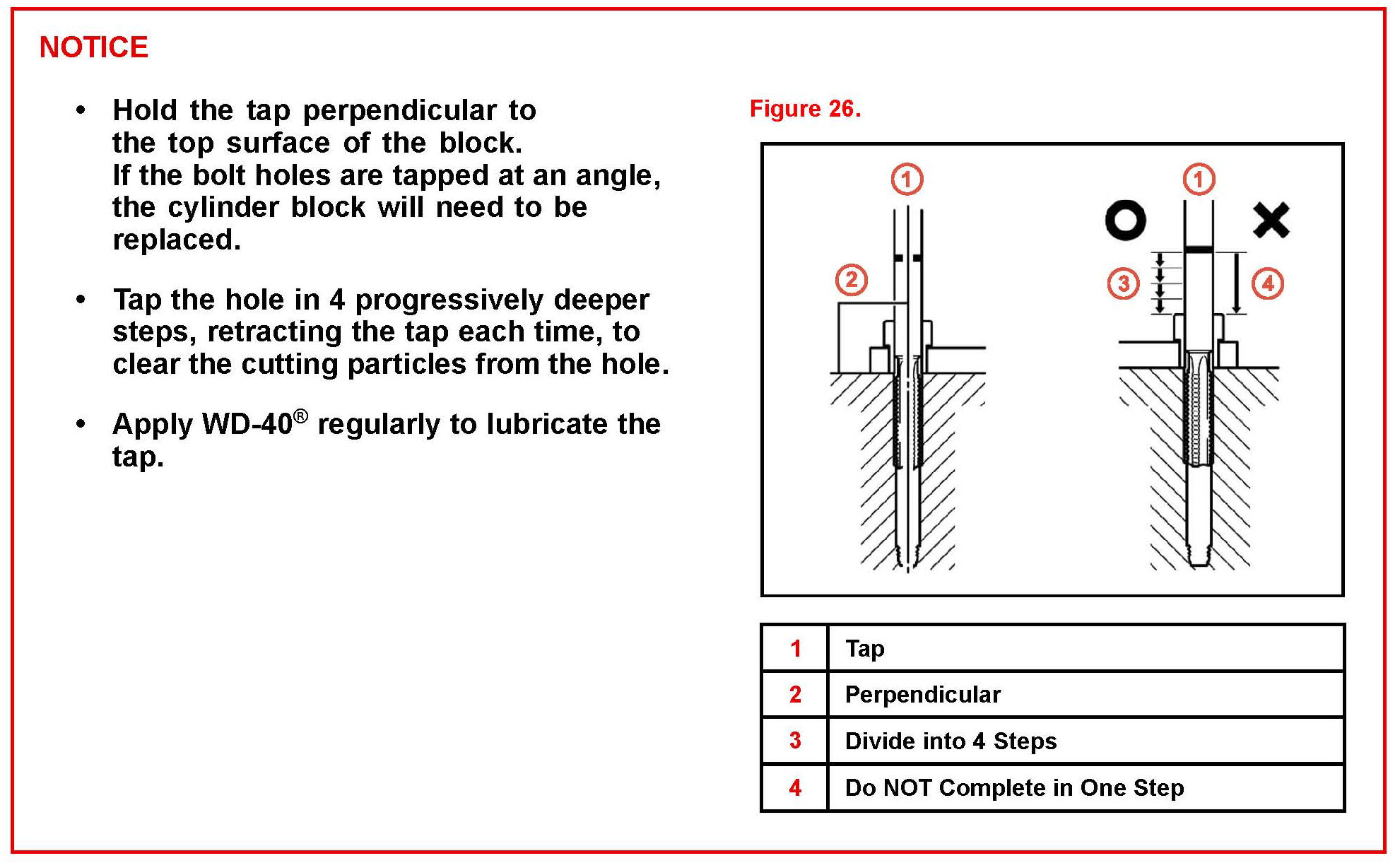 If the cutting particles that are produced during the drilling and tapping process enter the engine, they can cause engine damage, so be sure to apply protection.