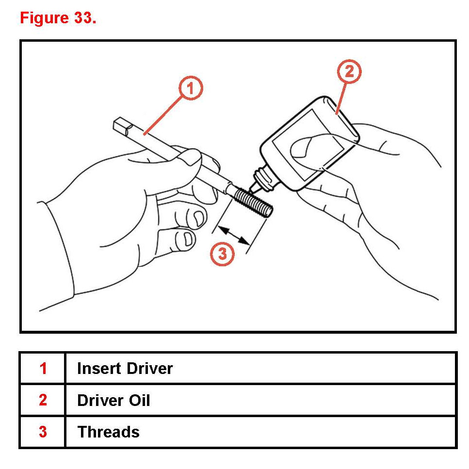 A. Apply a small amount of driver oil to the threads of the insert driver.