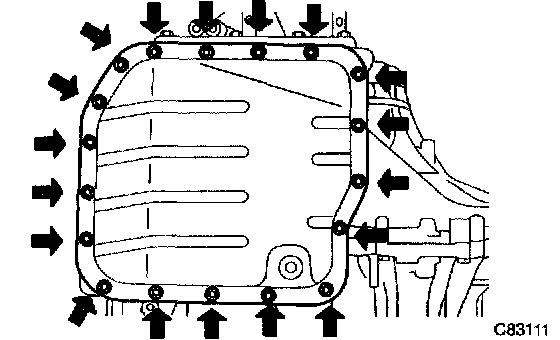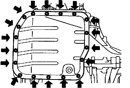 c. Install a new gasket, oil pan and 18 bolts to the transaxle case.