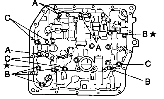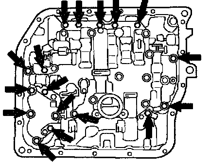 a. Support the valve body assy and remove the 17 bolts and the valve body assy.