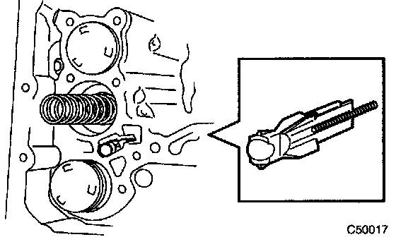 ^ Push the valve body against the accumulator piston spring and the check ball body to install it.