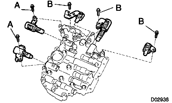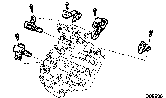 a. Install the 5 shift solenoid valves with the 5 bolts.