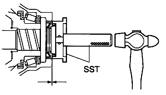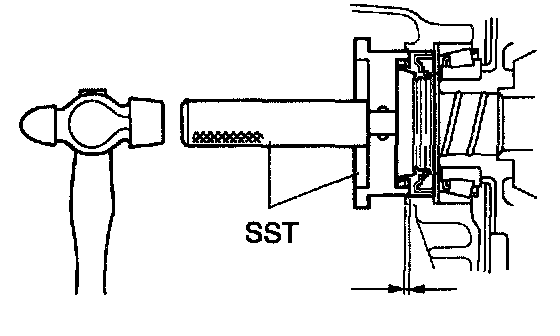 b. Using SST and a hammer, install the oil seal.
