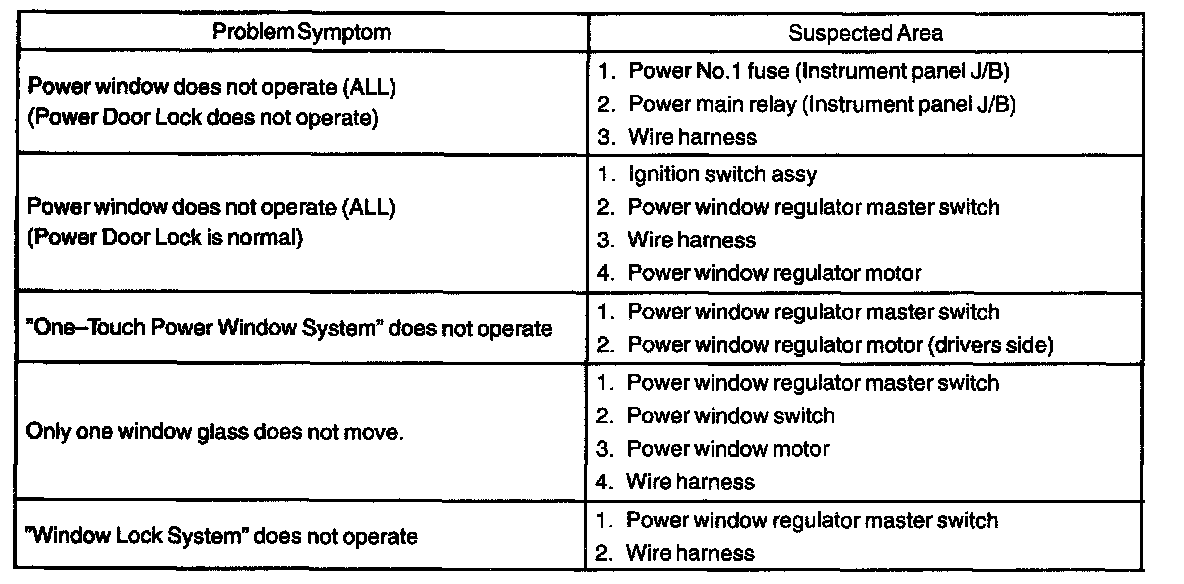 Problem Symptoms Table: