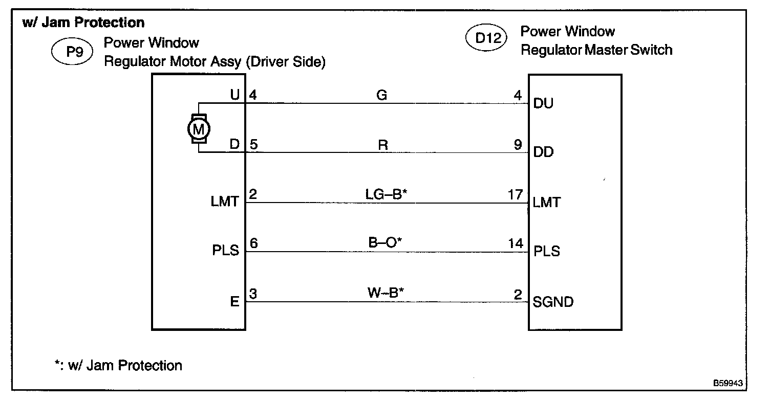 AUTO UP/DOWN OPERATION OF DRIVER'S DOOR WINDOW IS IMPOSSIBLE (MANUAL OPERATION IS POSSIBLE)HINT: This circuit is only for the w/jam protection models.