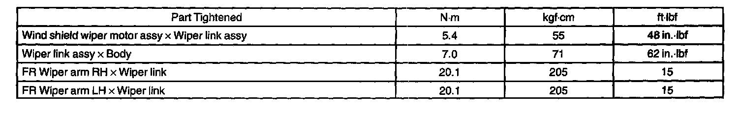 Wiper And Washer - Torque Specification: