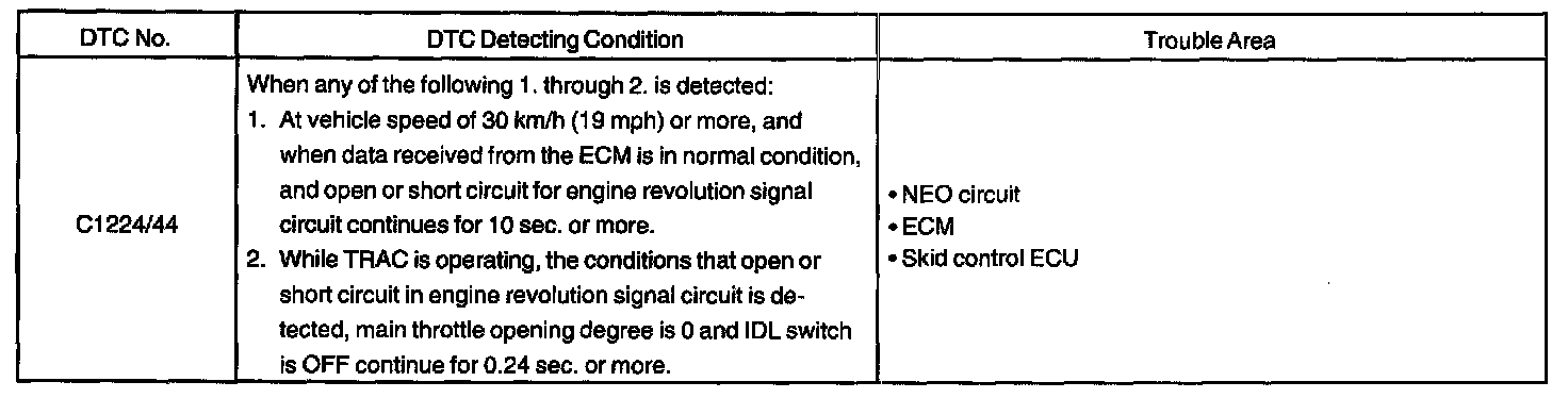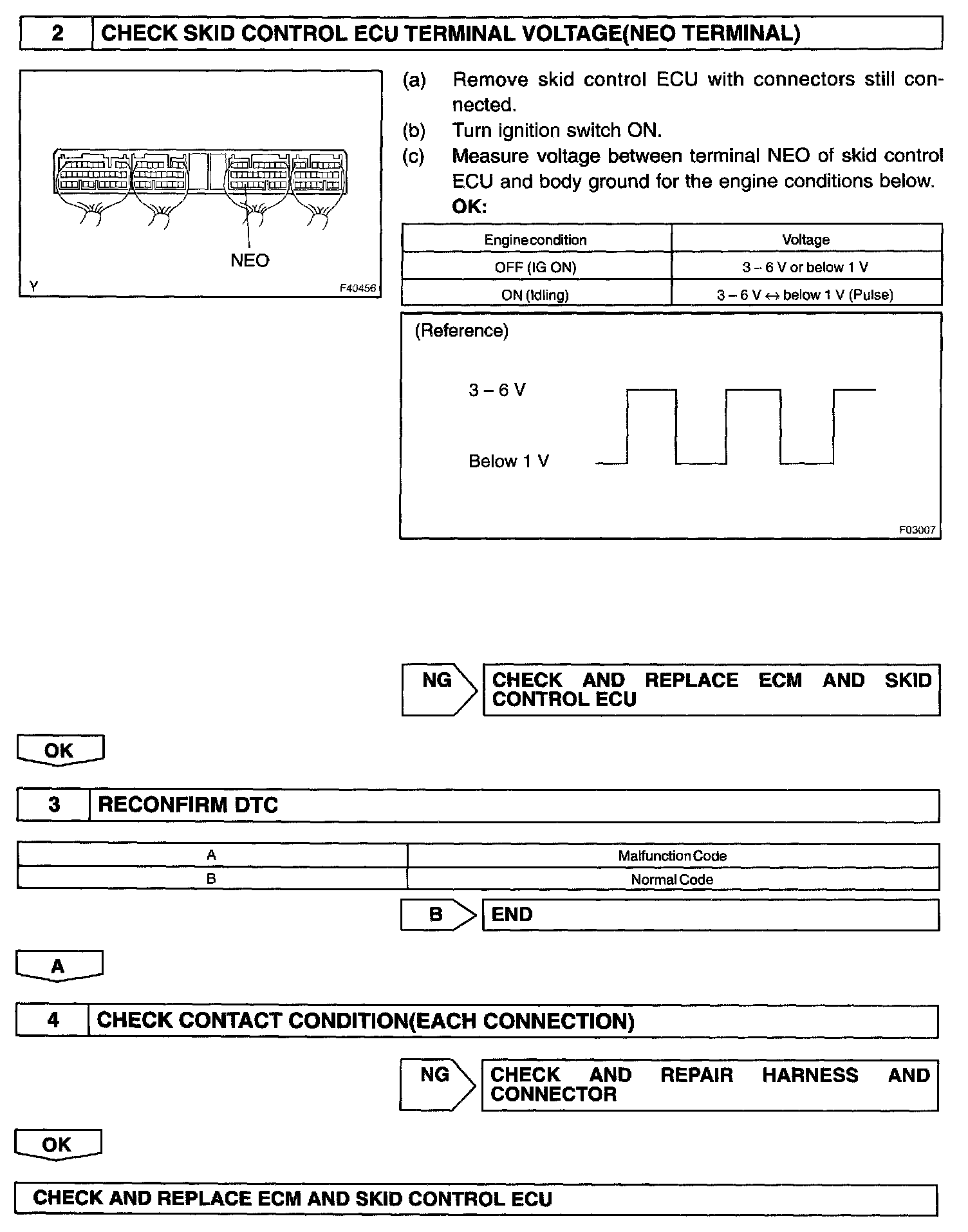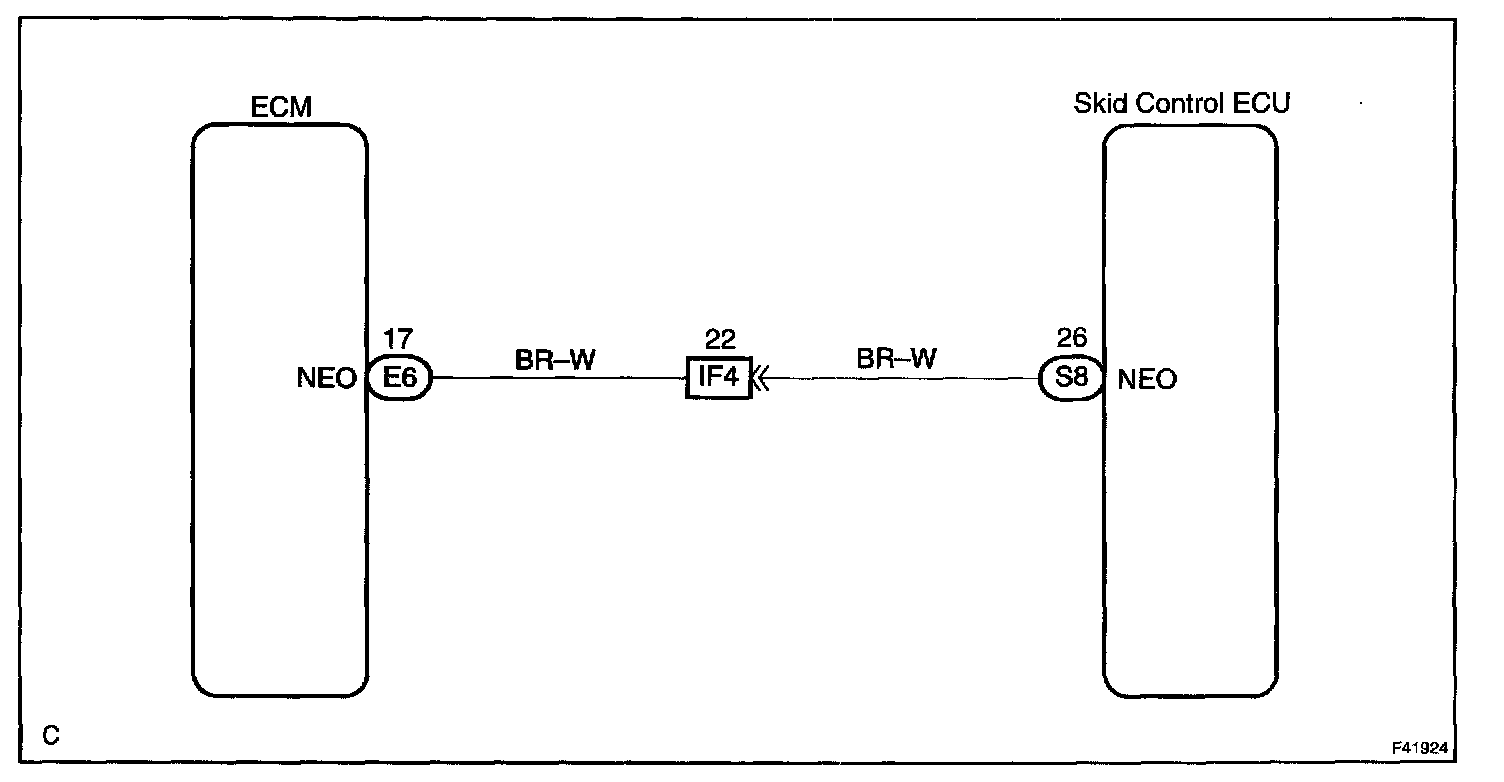The skid control ECU receives engine revolution speed signals (NE signals) from the ECM.
