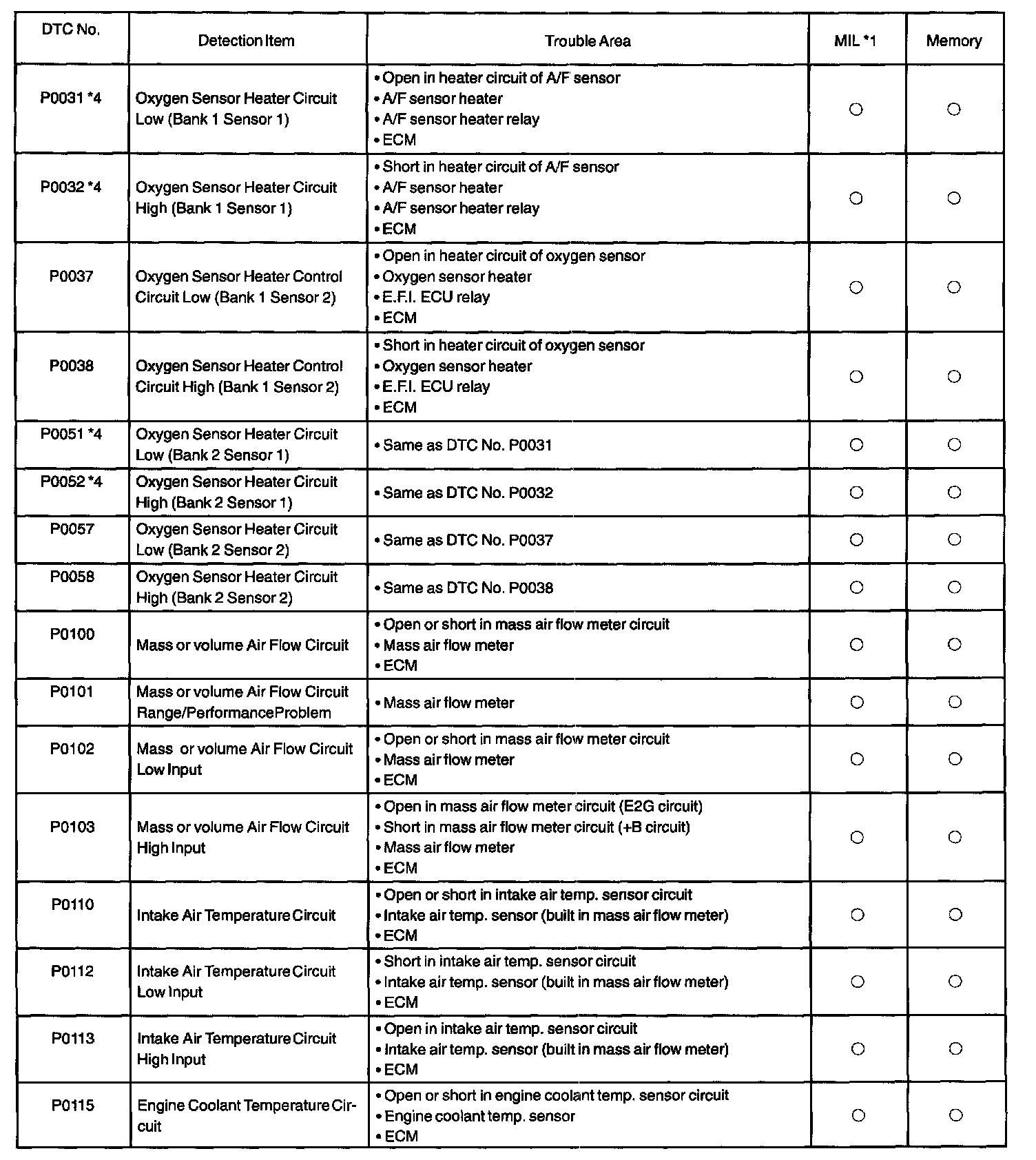 DIAGNOSTIC TROUBLE CODE CHARTP0031*4 - P0115: