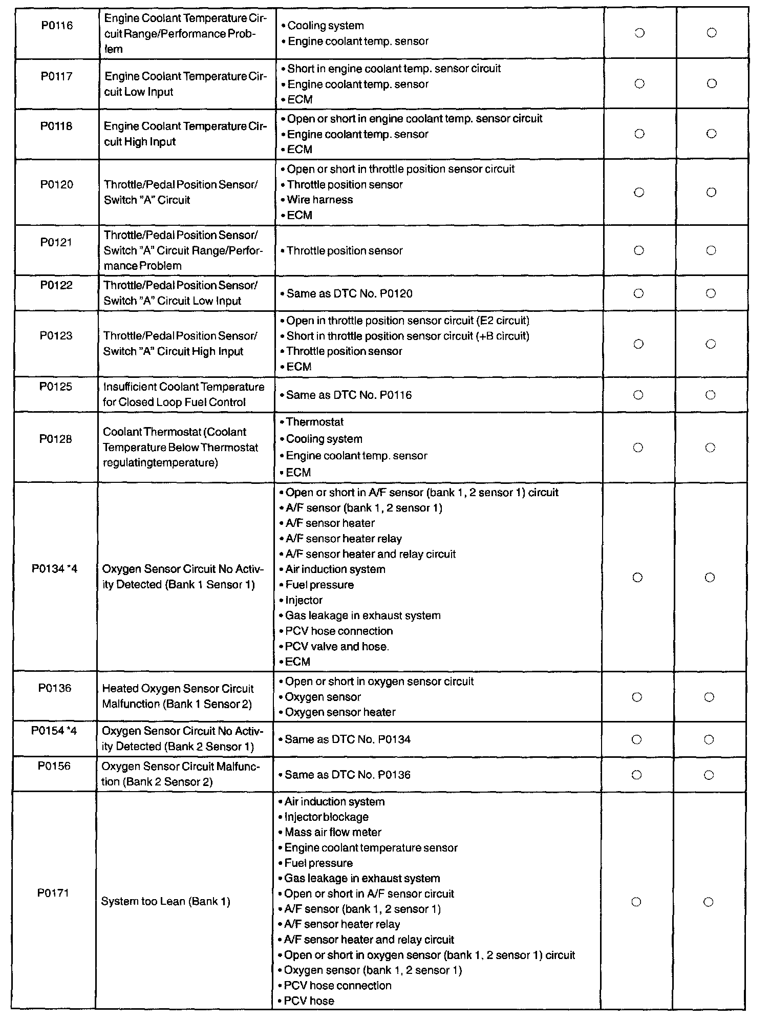 P0116 - P0171: