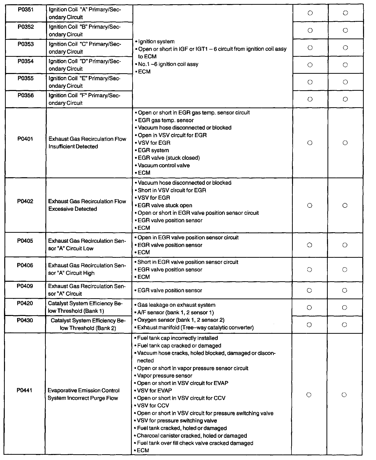 P0351 - P0441: