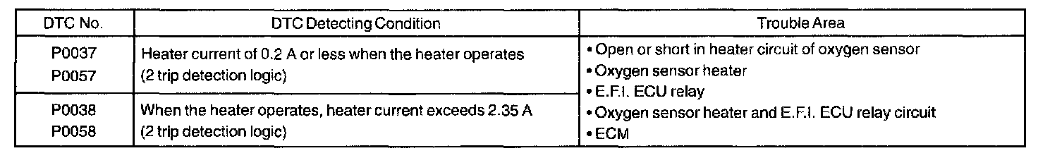 DTC P0037 OXYGEN SENSOR HEATER CONTROL CIRCUIT LOW (BANK 1 SENSOR 2)CIRCUIT DESCRIPTION