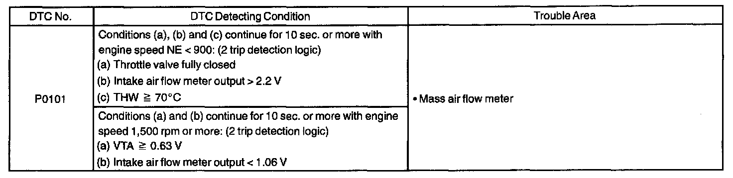 DTC P0101 MASS OR VOLUME AIR FLOW CIRCUIT RANGE/PERFORMANCE PROBLEMCIRCUIT DESCRIPTION