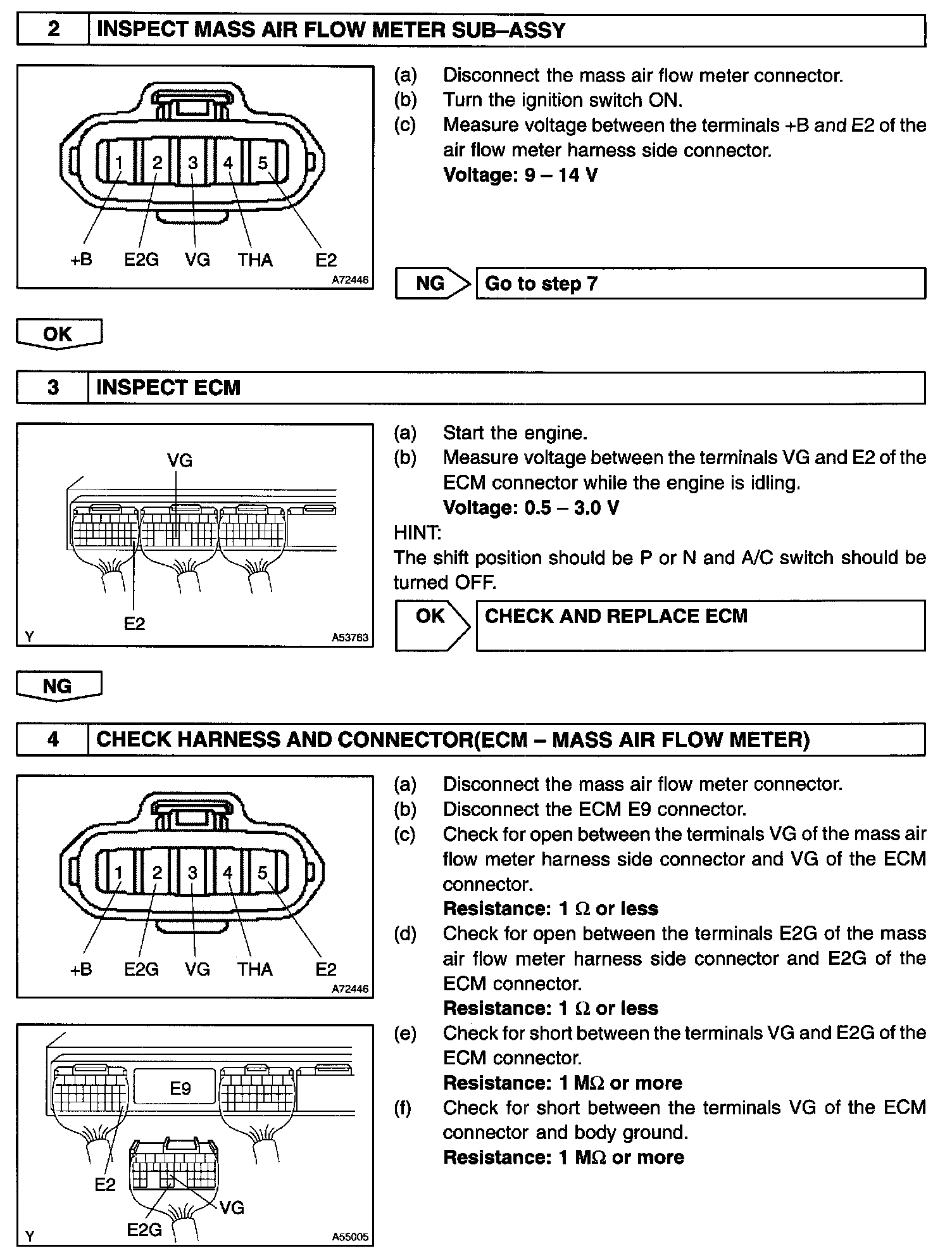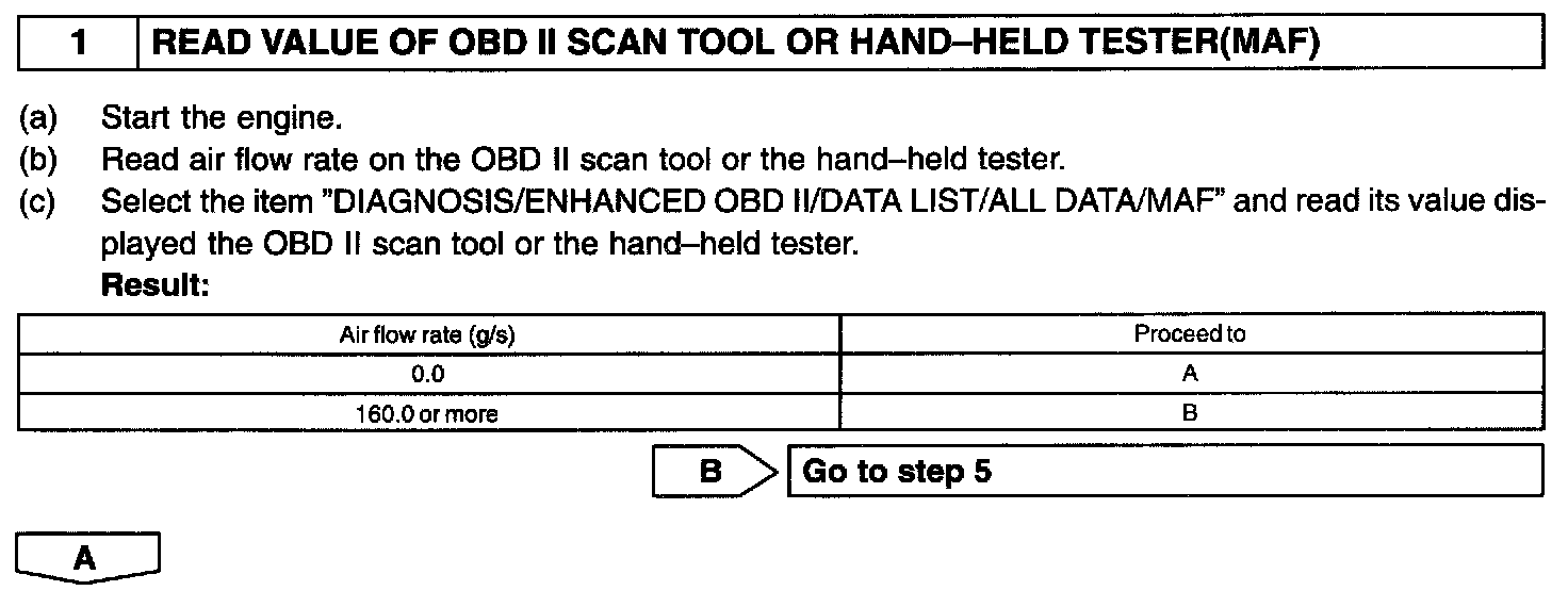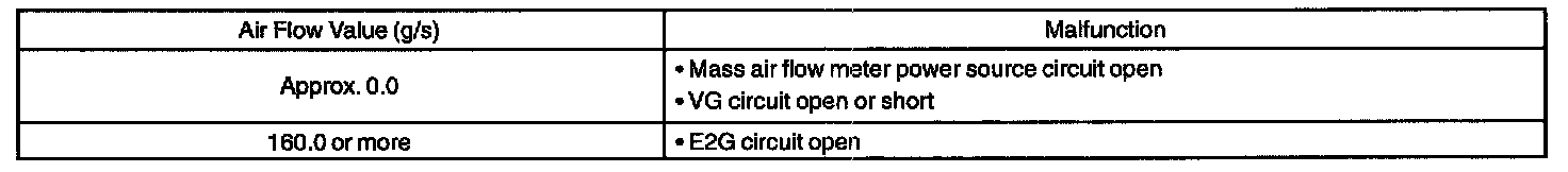 HINT: After confirming DTC P0100, P0102 or P0103, use the hand-held tester to confirm the mass air flow ratio from the "DIAGNOSIS/ENHANCED OBD II/DATA LIST/ALL DATA".