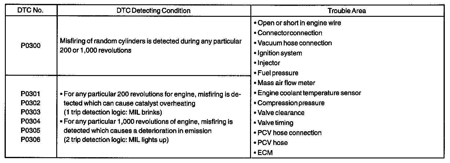 - On 6 and 8 cylinder engines, misfiring cylinder identification is disabled at high engine speed and only an general misfire fault code P0300 is stored instead of a cylinder specific misfire fault code (i. e., P0301 - P0308). Under the following conditions, only P0300 code may be stored.