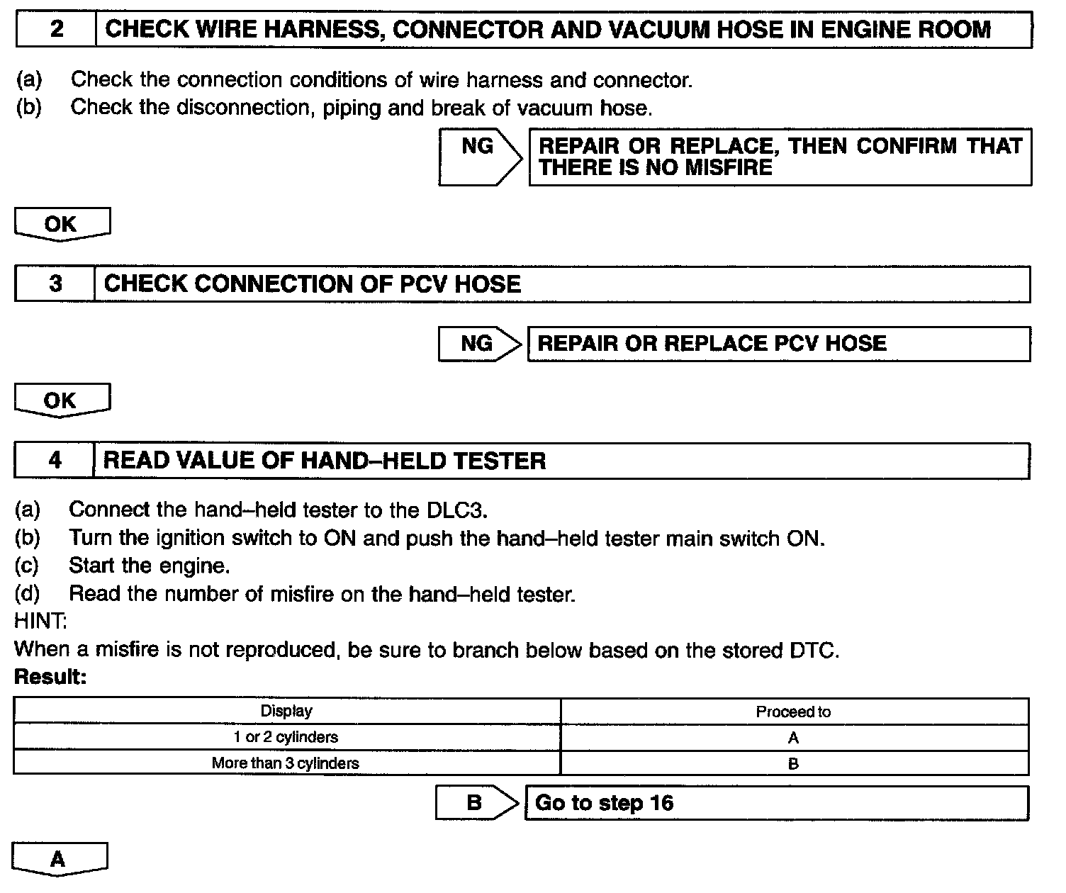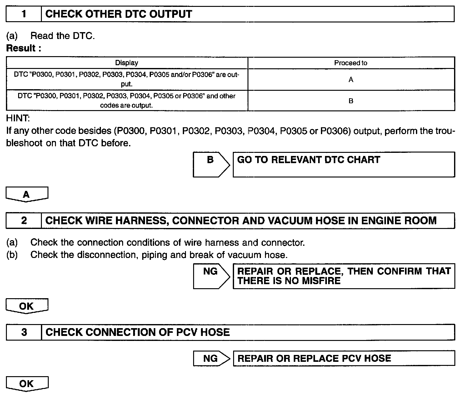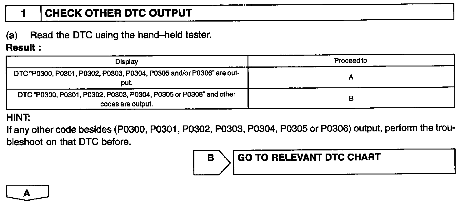- If DTCs besides misfire are memorized simultaneously, first perform the troubleshooting for them.