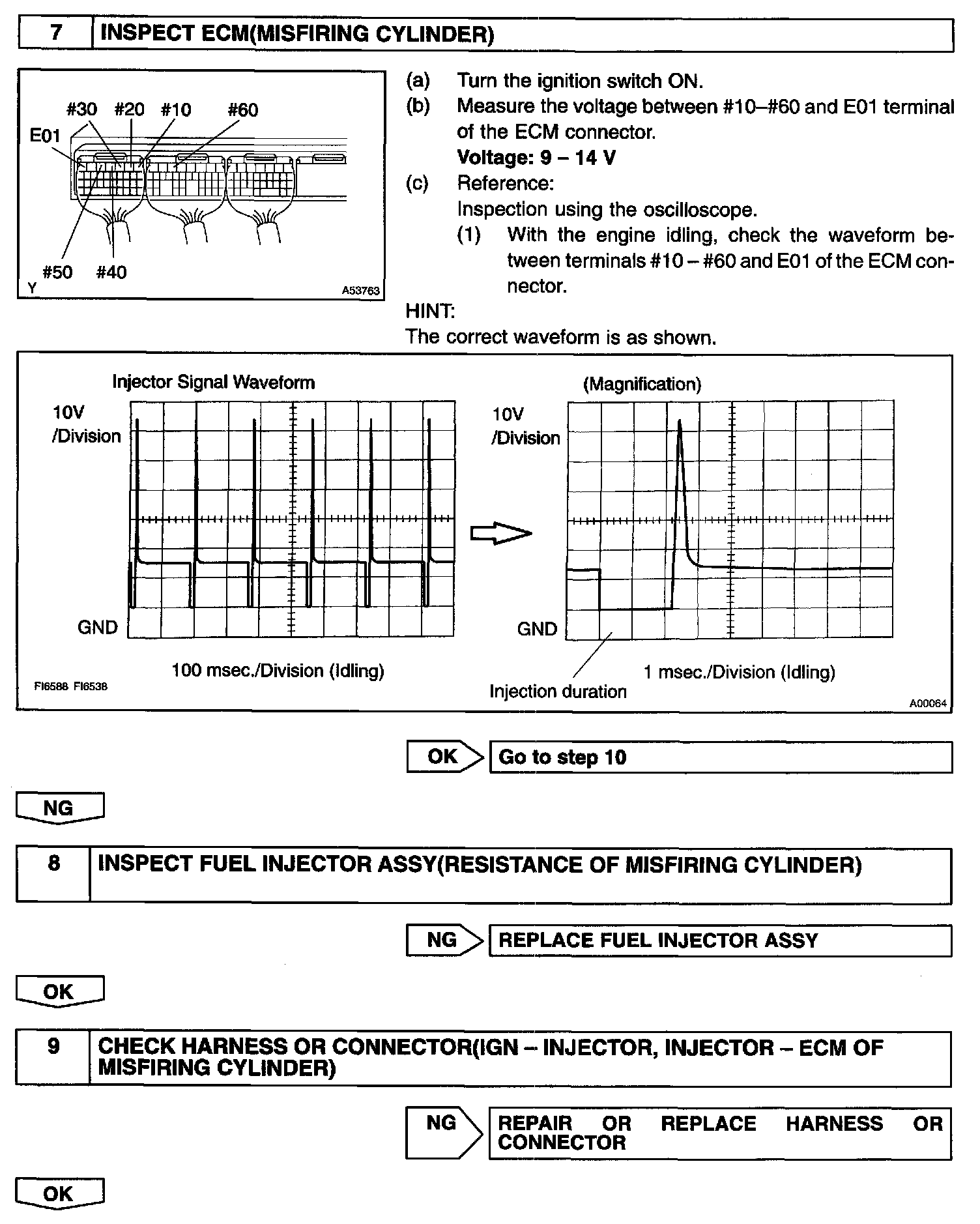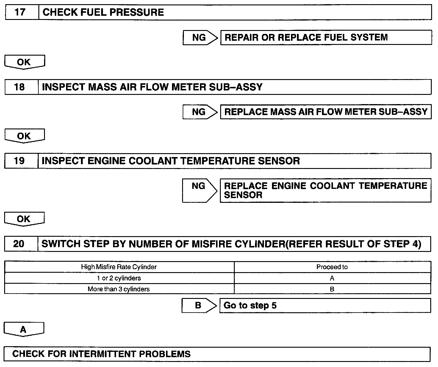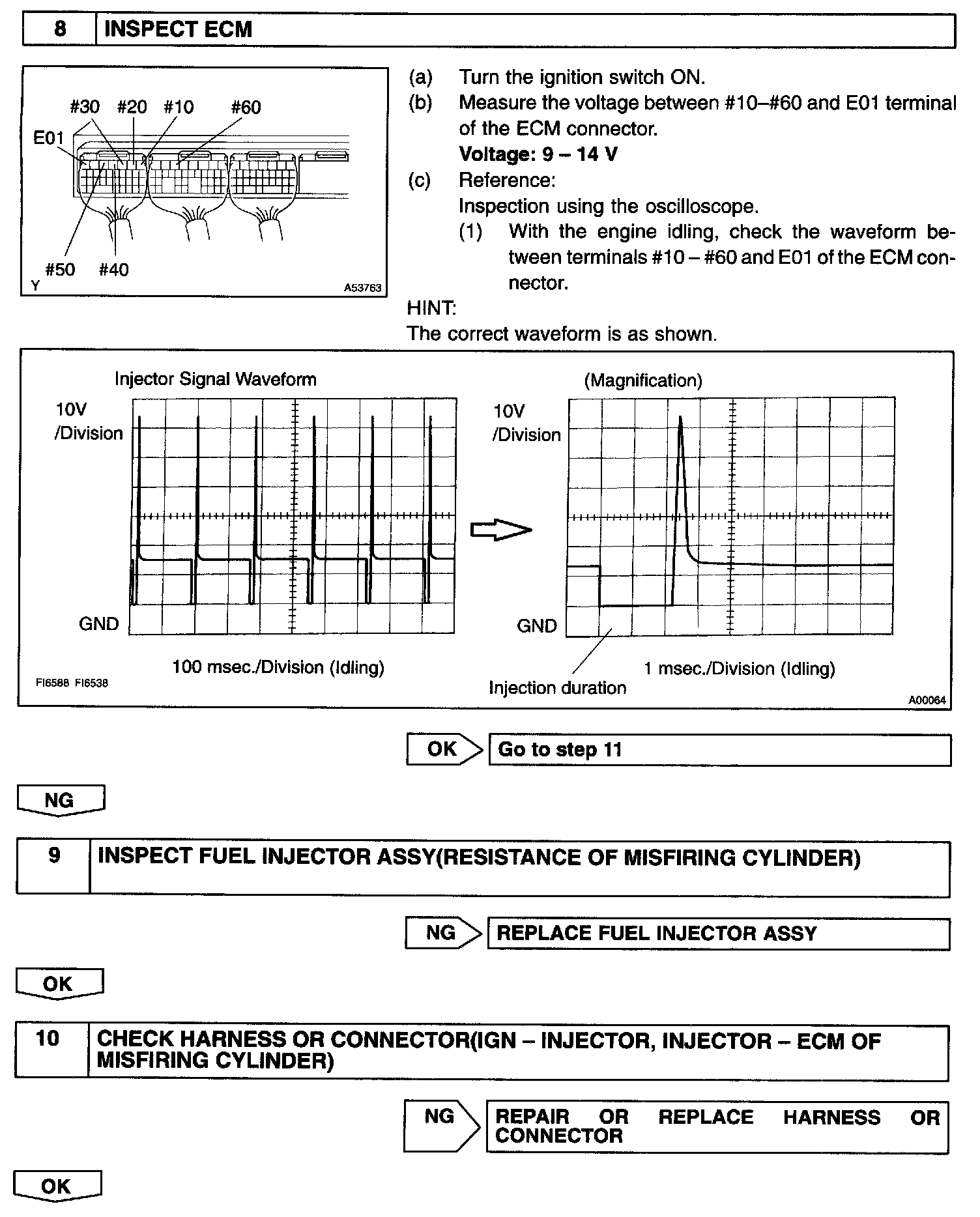 - If DTCs besides misfire are memorized simultaneously, first perform the troubleshooting for them.