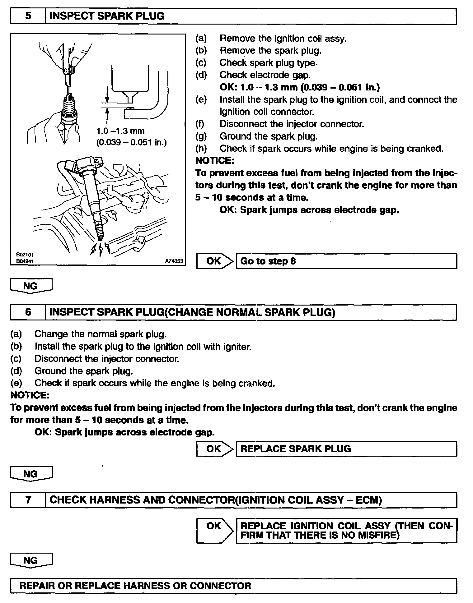 - If the misfire cannot be reproduced, the reason may be because of driving the vehicle with lack of fuel, use of improper fuel, a stain an ignition plug, etc.