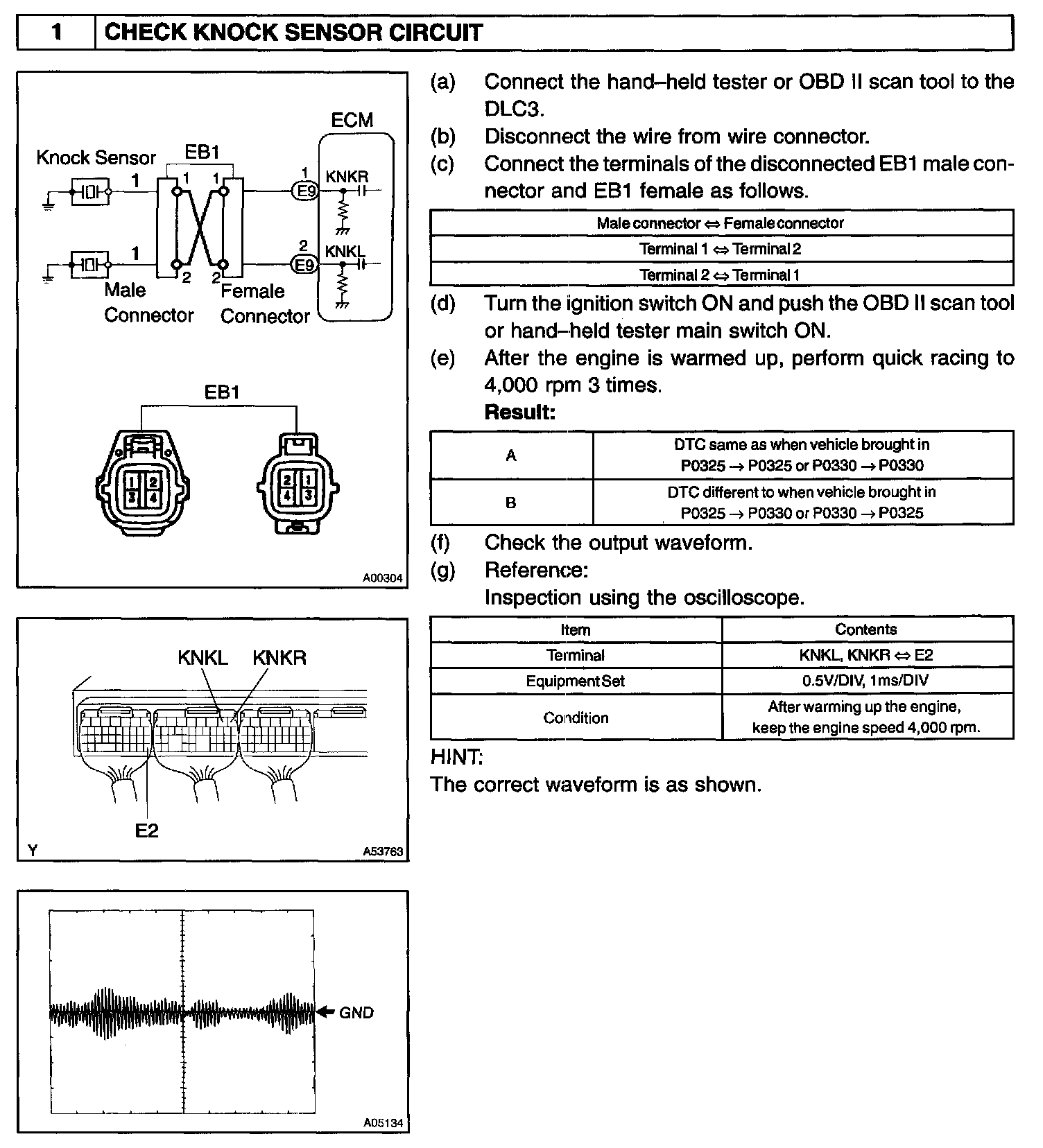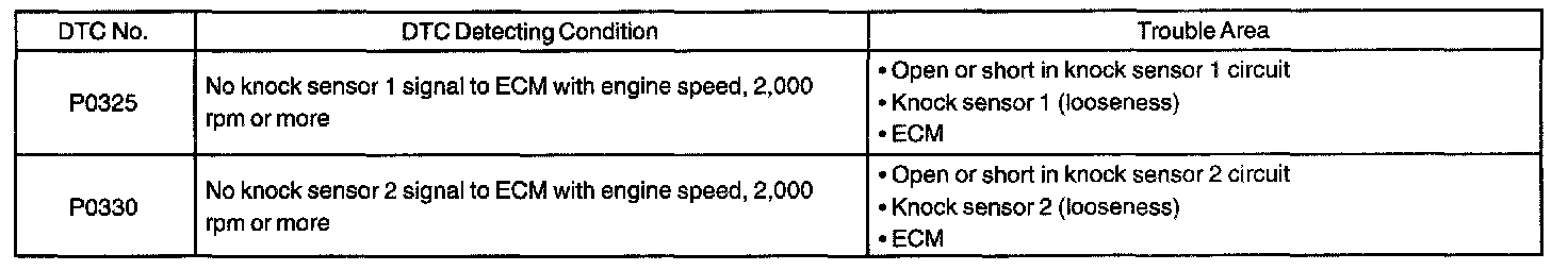 DTC P0330 KNOCK SENSOR 2 CIRCUIT (BANK 2)CIRCUIT DESCRIPTION