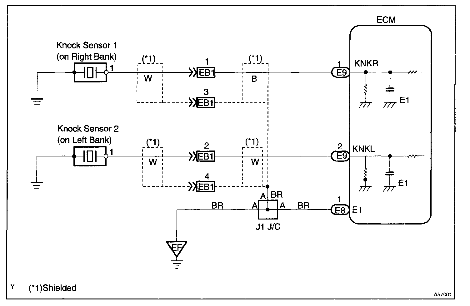 The each knock sensors are fitted on the right bank and left bank of the cylinder block to detect the engine knocking.