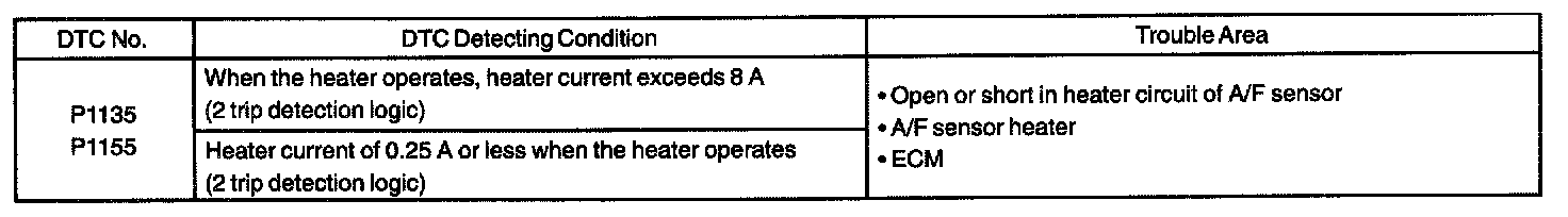P1155 - A/F Sensor Heater Circuit Malfunction (BANK2 SENSOR1)CIRCUIT DESCRIPTION