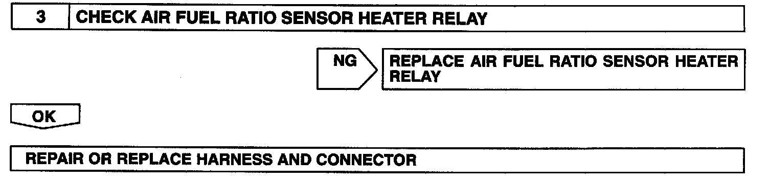 The main heated oxygen sensors include a heater which heats the zirconia element. The heater is controlled by the ECM. When the intake air volume is low (the temperature of the exhaust gas is low) current flows to the heater to heat the sensor for accurate oxygen concentration detection.