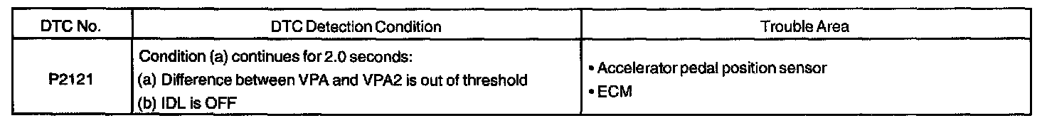 DTC P2121 THROTTLE/PEDAL POSITION SENSOR/SWITCH "D" CIRCUIT RANGE/PERFORMANCECIRCUIT DESCRIPTION