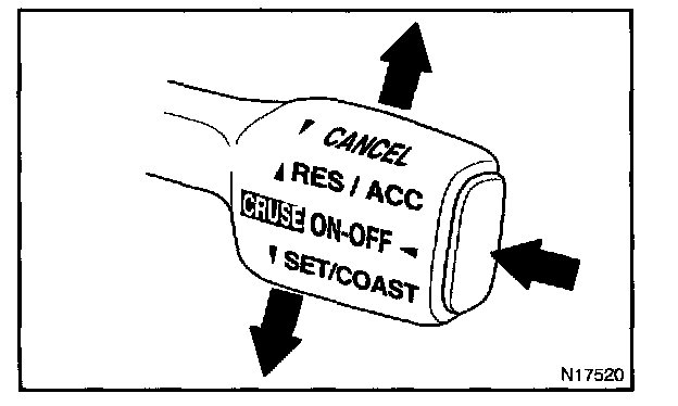 Check the control switch (MAIN, CANCEL, SET/COAST, RES/ACC).