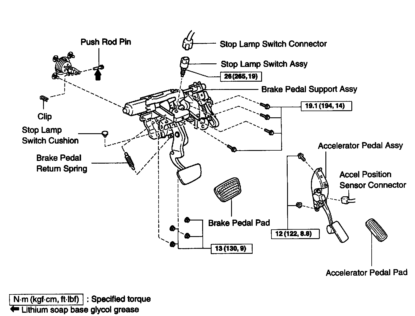 ACCELERATOR & BRAKE PEDAL ASSY OVERHAUL W/ RELATED COMPONENTS
