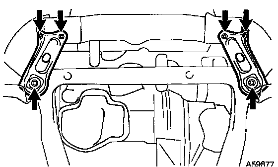 c. Remove the 4 bolts and 2 nuts, front suspension member brace rear RH and LH.