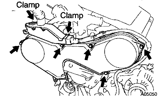 HINT: If it is judged that water is entering at the visual check, replace the timing belt cover.
