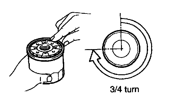 c. Lightly screw the oil filter into place, and tighten it until the gasket contacts the seat.