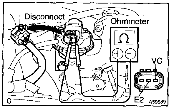 2. Using an ohmmeter, measure the resistance between the terminals VC and E2.