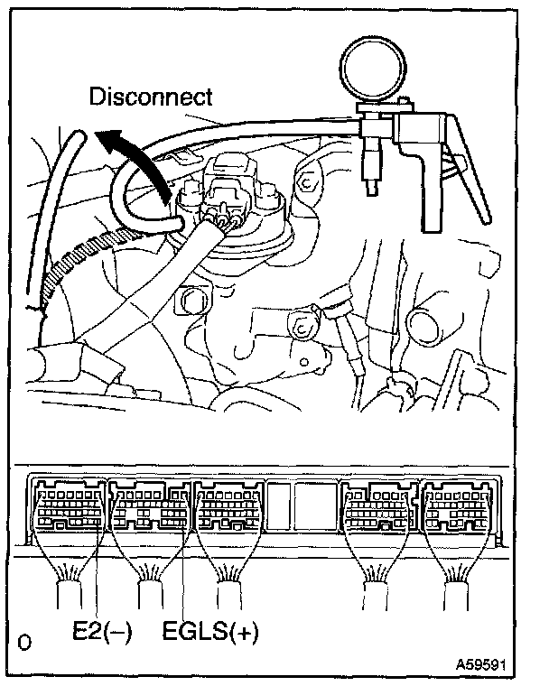 - Using the MITYVAC (Hand-Held Vacuum Pump), apply a vacuum (17.3 kPa, 130 mmHg, 5.1 in.Hg) to the EGR valve.