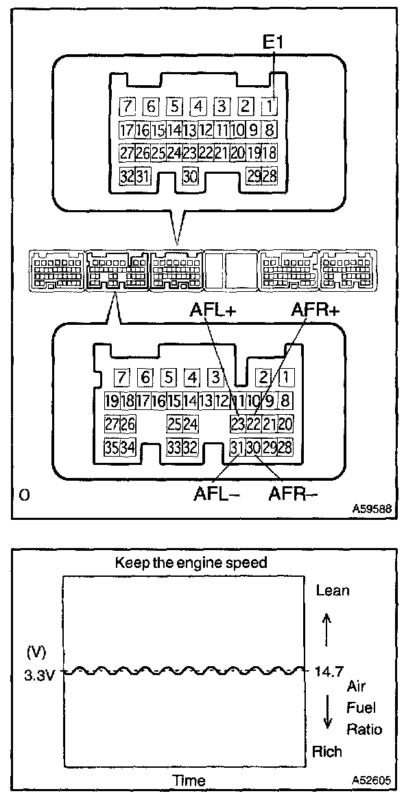 INSPECT AIR-FUEL RATIO COMPENSATION SYSTEMa. Measure voltage between terminals of the engine ECM.