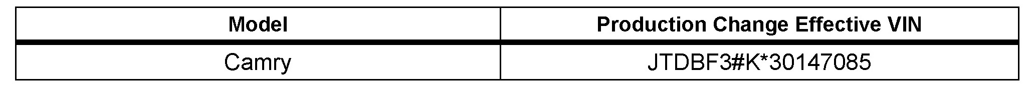 2003 model year Camry vehicles equipped with V6 engines produced BEFORE the Production Change Effective VINs shown.